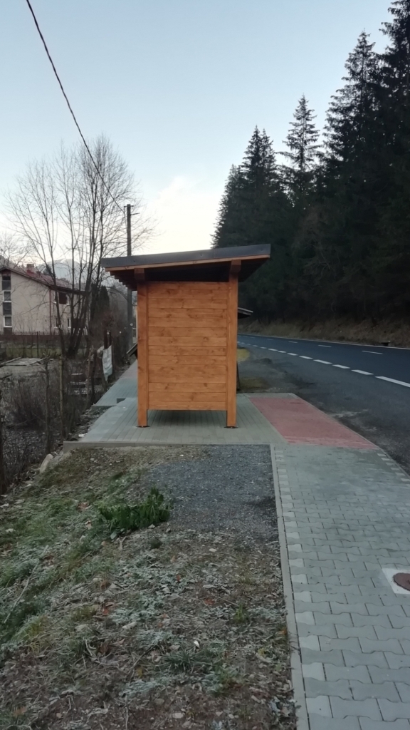 Cieľ projektu: Vybudovanie novej zastávky v obci Malužiná v aspekte zlepšenia prístupu občanov k verejnej doprave a zabezpečeniu ochrany občanov pred poveternostnými vplyvmi počas čakania na autobus.